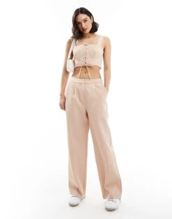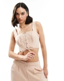 Miss Selfridge Tailored Lace Up Corset Crop Top Co Ord In Pink Pinstripe