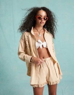 Miss Selfridge Textured Lace Mix Co-ord In Cream