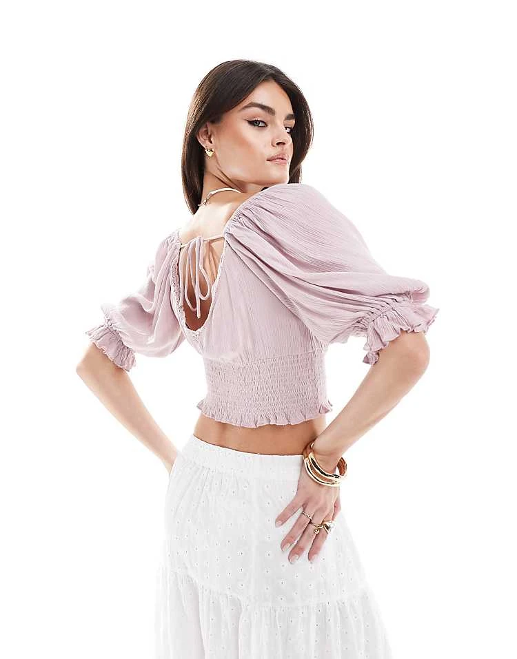 - Blouson sleeves