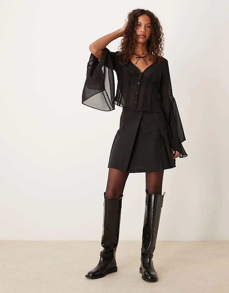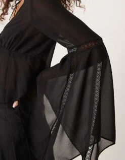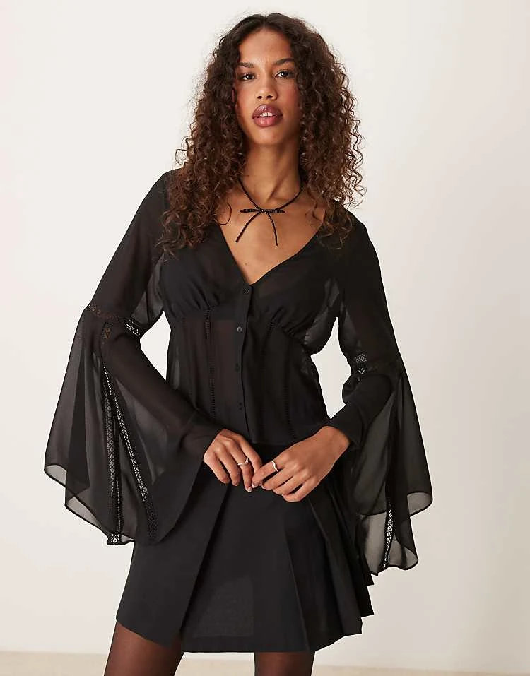 - Flared sleeves