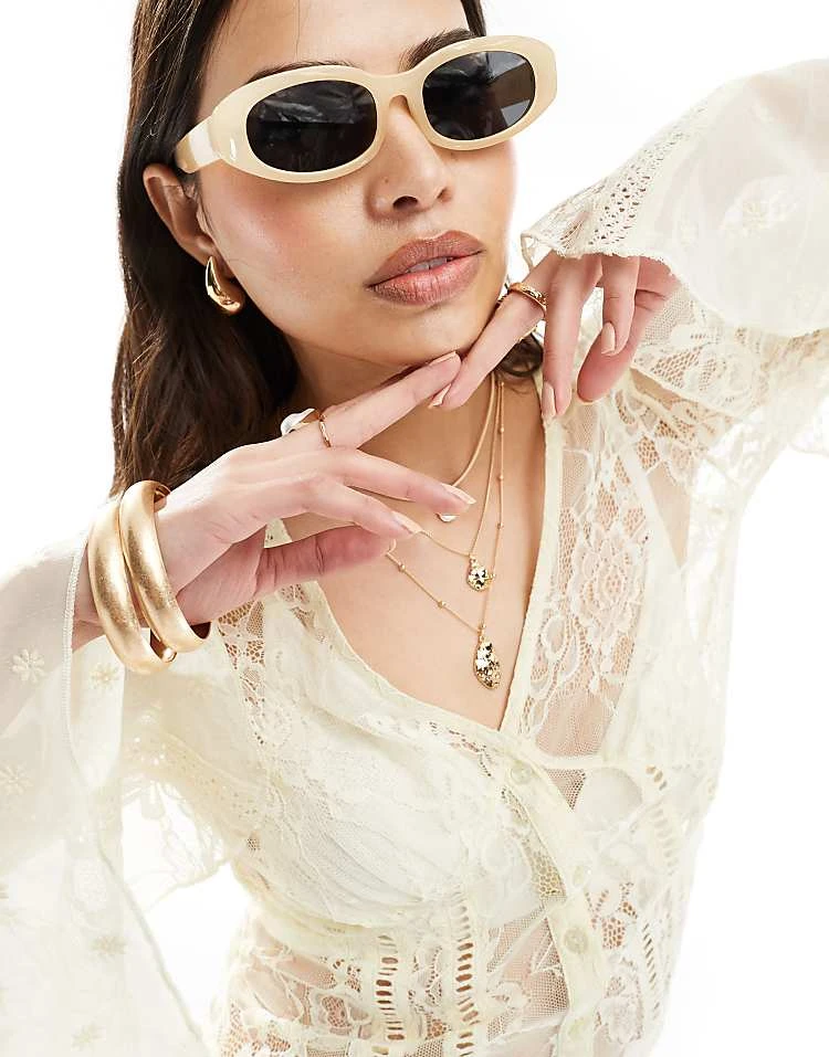 - Flared sleeves
